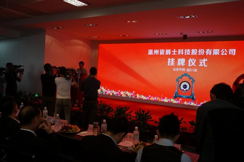 温州瓷爵士科技股份有限公司挂牌仪式在温州市股权营运中心举行