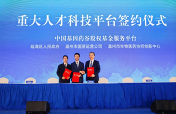 在10月20日我市举行的重大人才科技平台签约仪式上,在市委副书记、市长姚高员的见证下,市国资运营公司与瓯海区政府、温州医科大学签订战略合作协议,共同发起组建总规模10亿元的中国基因药谷股权投资基金,打造浙江医药产业创新发展新模式,服务中国基因药谷的建设发展。