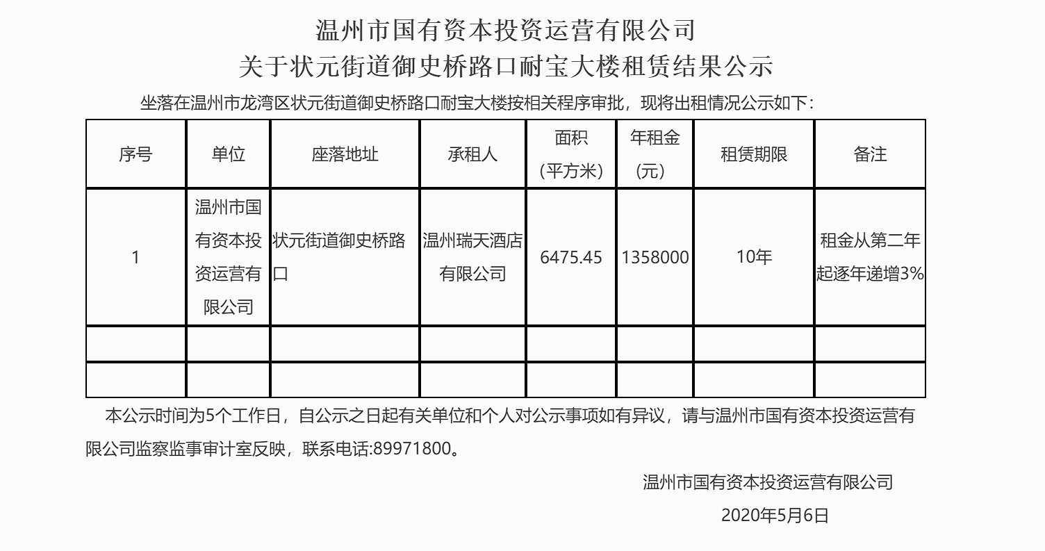 91网站 关于 状元街道御史桥路口耐宝大楼租赁结果公示