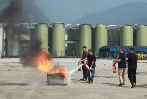 当天上午9点,消防演练在5号楼北边空地举行,温鹿酒业有限公司总经理屠瀑宣布演练正式开始,演练分为应急报告、应急启动、快速抢险、应急恢复等环节进行现场演练。现场模拟了生产事故现场的火情,参演人员观察风向,动作规范,精神饱满,熟练使用灭火器。
